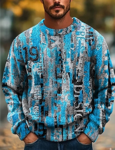 Муж. Абстракция Текущий зыбучий песок / жидкость Пуловер Свитер Вязаная одежда "Круглый вырез ""под горло""" На каждый день Отпуск Дом Для улицы 3D печать Вязанная Сохраняет тепло Длинный рукав