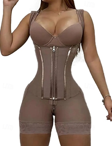 Жен. Корсет Корректирующее белье Утягивающее белье Корректирующее белье Комбинезоны Сексуальный корсет Мода Секси Чистый цвет Молния Отпуск Для улицы Свидание Без рукавов U-образный вырез