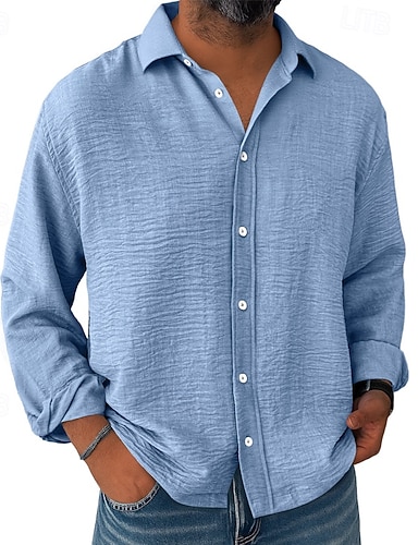 Муж. Рубашка Летняя рубашка Повседневная рубашка Кнопка рубашка Вафельная вязаная рубашка Черный Розовый Синий Зеленый Длинный рукав Полотняное плетение Лацкан Отпуск Повседневные Кулиска Одежда