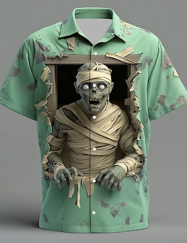 Halloween Муж. Зомби Палатка "кокон" Треснувшая стена Рубашка Кнопка рубашка С короткими рукавами Темный готический стиль Праздники Уличная одежда Лето Весна Отложной 3D печать рубашки с воротником
