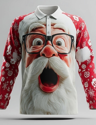 Новогодняя тематика Муж. Дед Мороз Поло Длинный рукав Футболки поло Лацкан На каждый день на открытом воздухе Одежда для спорта и отдыха На каждый день 3D печать Пуговицы Весна Осень Зима Красный 1