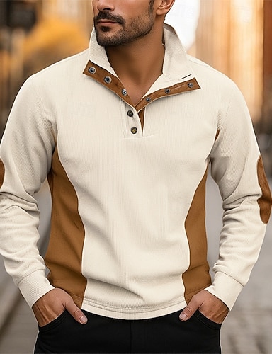 Муж. Толстовка Абрикосовый Черный Белый Красный Синий Воротник-стойка Контрастных цветов Пэчворк Для занятий спортом Повседневные Праздники Полиэстер Корд Уличный стиль Классический На каждый день