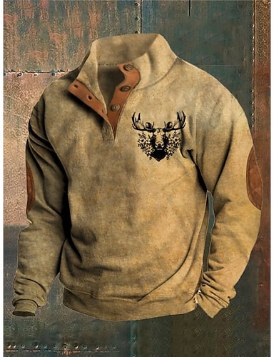 Муж. Толстовка Толстовка с капюшоном и пуловером Натяни Толстовка на пуговицах Охотничья толстовка Хаки Воротник-стойка Полотняное плетение Пэчворк Для занятий спортом Повседневные Праздники