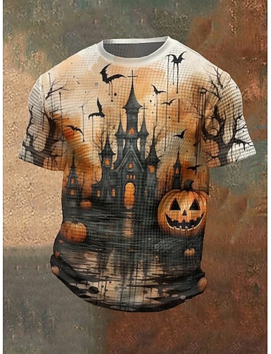 Муж. хэллоуин рубашка Тыква Летучая мышь "Круглый вырез ""под горло""" Одежда 3D печать на открытом воздухе Праздники Тематическая вечеринка Хэллоуин вечеринка С короткими рукавами С принтом