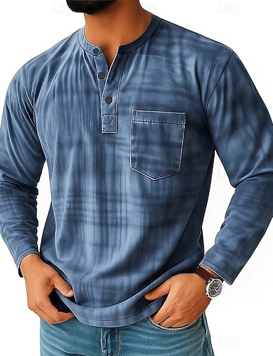 Муж. Винтаж Рубашка Хенли футболка футболка Длинный рукав Ретро На каждый день Повседневные Весна Осень Все сезоны Красный Синий Лиловый Коричневый Зеленый Хенли Футболка Хенли