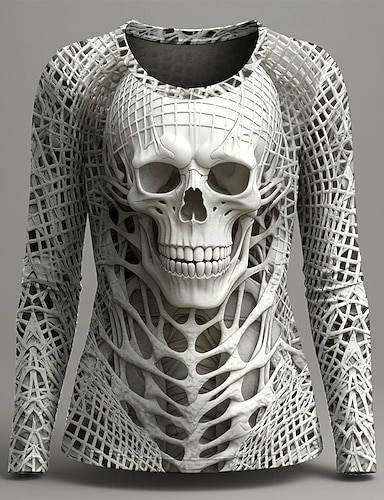 Halloween Жен. Футболка Графика Черепа Мода На каждый день Длинный рукав Вырез под горло Круглый вырез Обычные топы Повседневные выходные С принтом Красный Синий Зеленый Серый Лето Весна Осень Зима