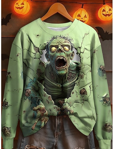 Halloween Муж. Зомби 3D Толстовка Панк Для вечеринки Вырез под горло Отпуск Синий Лиловый Crewneck 3D Все сезоны Дизайнер