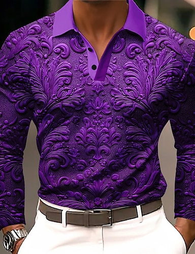 Муж. Цветочный принт Поло Длинный рукав Футболки поло Лацкан Деловая одежда Одежда для спорта и отдыха На каждый день 3D печать Пуговицы Весна Осень Зима Синий Лиловый Оранжевый