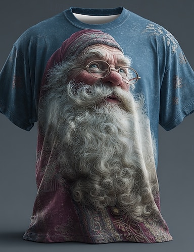 Новогодняя тематика Муж. Дед Мороз Футболка С короткими рукавами Футболка 3D печать Вырез под горло Рубашка Повседневные Оригинальный рисунок Художественный Отпуск Для вечеринок Для улицы Синий