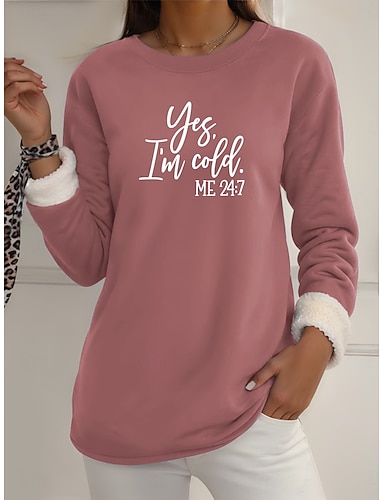 Женская толстовка-свитшот с надписью «Yes Im Cold» с рисунком, теплая, повседневная, пушистая, с длинным рукавом, круглым вырезом, с круглым вырезом, с длинными топами, повседневная, светло-розовая, черная, темно-розовая, синяя, весна, осень, зима