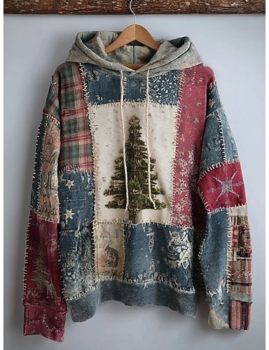 Жен. Толстовка с капюшоном и пуловером Цветочный принт Графика Новогодняя ёлка Элегантный стиль Теплый Активный Длинный рукав Капюшон Обычные топы Для улицы На каждый день Повседневные