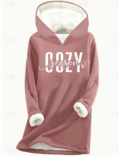 Жен. Толстовка с капюшоном и пуловером Графика Буквы На каждый день Комфорт Длинный рукав Капюшон Длинные топы Для улицы На каждый день Повседневные С принтом Розовый Синий Серый Осень Зима