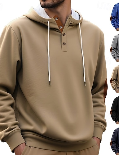 Муж. Толстовка Толстовка с капюшоном и пуловером Толстовка на пуговицах Черный Темно синий Тёмно-синий Хаки Светло-серый Капюшон Полотняное плетение Пэчворк Цветовые блоки