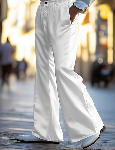 Муж. Штаны Костюм Беллое дно Расклешенные брюки Атласные брюки Карман Сплошной цвет Полотняное плетение Дышащий Полная длина на открытом воздухе Для вечеринок Бизнес Мода Уличный стиль Черный Белый