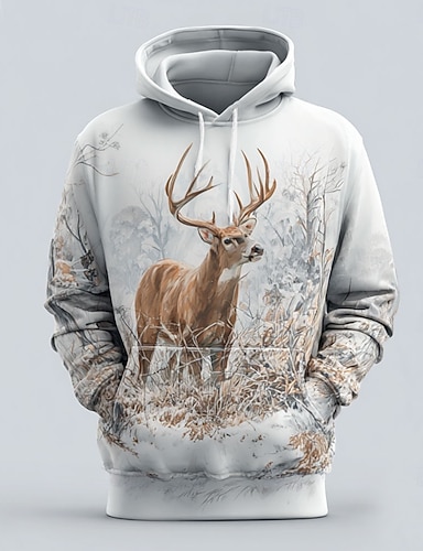 Муж. камуфляж Олень Толстовка Мода Классика Вырез под горло на открытом воздухе Для охоты Белый Коричневый Кулиска Осень Зима Дизайнер