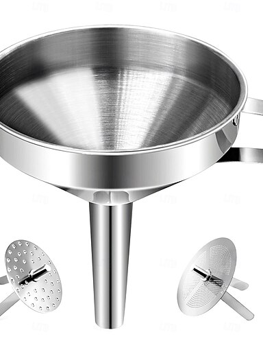Кухонная воронка из нержавеющей стали с 2 съемными фильтрами. Многоцелевые воронки из высококачественного металла для приготовления пищи с 2 съемными фильтрами-сетками для переливания жидких или сухих