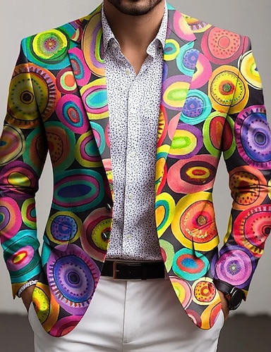 Муж. Блейзер Пальто на открытом воздухе Для улицы Повседневные На каждый день Наступила зима 100% полиэстер Графика 3D печать Пуговицы Сохраняет тепло Удобный Однобортный крой Блейзер Красный