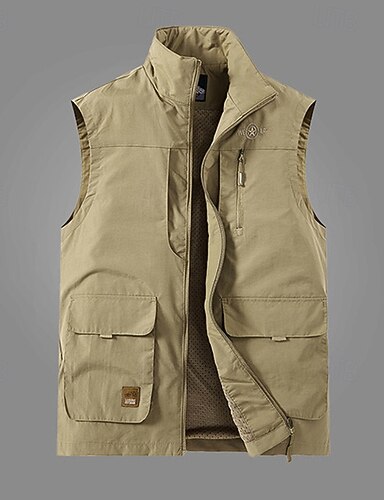 Муж. Открытый жилет Жилет Жилет для рыбалки на открытом воздухе Повседневные Мода На каждый день Весна Осень Карман Пуговицы Нейлон Удобный Полотняное плетение Молния Воротник-стойка Стандартный