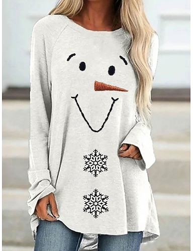 Новогодняя тематика Жен. Футболка Графика Снеговик Винтаж Стиль Классика Длинный рукав Вырез под горло Длинные топы Повседневные На выход выходные С принтом Белый Весна Осень Зима