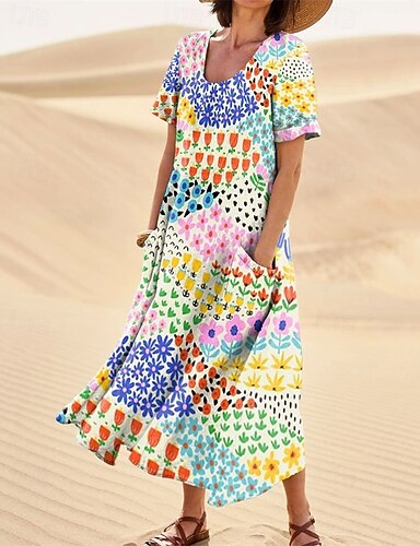 Жен. длинное платье платье макси Повседневное платье Платье в стиле 50-х годов Летнее платье Элегантный стиль Мода Романтика на открытом воздухе Для вечеринок Праздники Стандартный Цветы