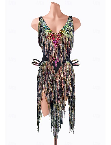 Латино Платье Планка Стразы Жен. Выступление Учебный Без рукавов Завышенная талия Спандекс