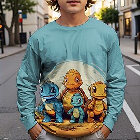 Мальчики 3D Динозавр Футболка Длинный рукав Весна Осень Мода Классический Дети 4-12 лет Вырез под горло на открытом воздухе Повседневные Стандартный
