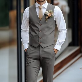Муж. Жилет Отпуск Для вечеринок Бизнес Винтаж Лето Весна Пуговицы Полиэстер Удобный Полотняное плетение Однобортный с 1 пуговицей V-образный вырез Стандартный Черный Коричневый Светло-серый Жилет