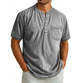 Муж. Рубашка Хенли Футболка С короткими рукавами Полотняное плетение Ретро На каждый день Кнопка вверх Промытый Хенли Повседневные Лето Розовый Светло-синий Лиловый Футболка Хенли