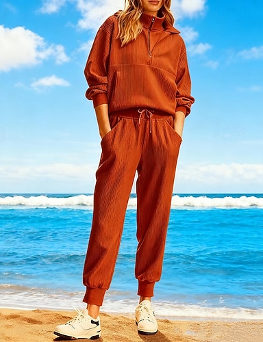 Жен. Комплекты спортивных костюмов с пуловерами Спортивный костюм из двух частей Наряды для отдыха Однотонный Наборы одежды Наступила зима Розовый Военно-зеленный