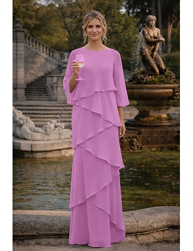Футляр В пол Свадебное платье для гостей Вечернее платье Платье для матери невесты Рукав 3/4 Вырез под горло Элегантный стиль Официальные Шифон с Оборки