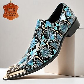 Мужские кожаные лоферы с змеиным принтом - стильные туфли с острым носком и металлическими наконечниками