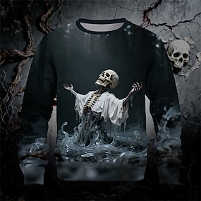 Хэллоуин Мальчики 3D Графика Черепа Толстовка Длинный рукав Весна Осень Мода Классический Полиэстер Дети 4-12 лет Вырез под горло на открытом воздухе Повседневные Стандартный