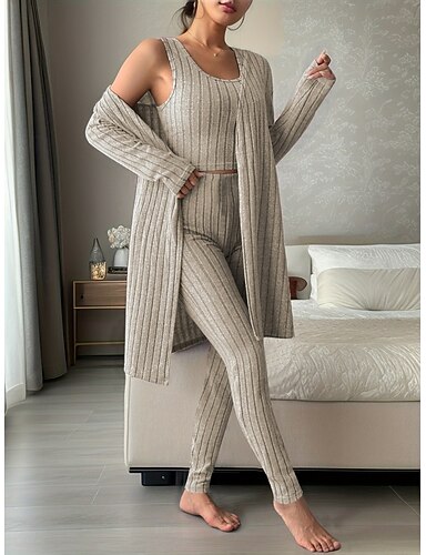 Жен. пижама На каждый день Удобная обувь Чистый цвет Дом Повседневные Длинный рукав Вырез под горло Винный Верблюжий Коричневый Бежевый Весна Осень Зима Узкий крой
