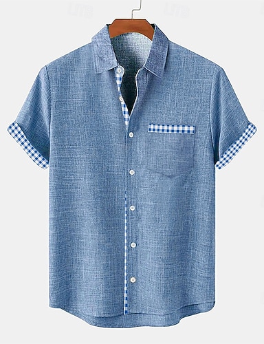 Муж. Контрастных цветов Льняная рубашка Летняя рубашка Кнопка рубашка С короткими рукавами Мода Повседневная Отпуск Праздники Одежда для пляжа Лето Весна Отложной рубашки с воротником Передний карман