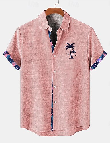 Муж. Рубашка льняная рубашка Пляжная рубашка Гавайская рубашка Кокосовая пальма Отпуск Праздники Розовый Синий Хаки Короткие рукава Отложной Лето Одежда