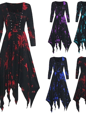 Ретро Панк & Готика Средневековый Платья Платье A-Line Девушка-гот Маскарадный костюм Жен. Хэллоуин Карнавал Маскарад На каждый день фестиваль Взрослые Платье Весна Осень