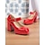 Женские красные лакированные туфли на платформе из искусственной кожи – массивные высокие каблуки с ремешком на пряжке, смелый ретро-стиль 80-х для вечеринок, официальных мероприятий и Рождества
