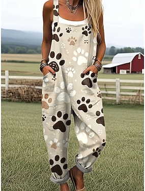 Жен. Комбинезон Активный Графика Без рукавов Отпуск Для улицы Свободное облегание Белый Светло-коричневый Хаки Лето