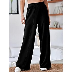 Жен. Штаны Брюки Прямой силуэт Мода Уличный стиль Полная длина Завышенная Полотняное плетение Кулиска Эластичная талия Воздухопроницаемость Удобный Слабоэластичная Для улицы На каждый день На выход