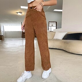 Жен. Чино Прямой силуэт На каждый день Полная длина Нормальная Полотняное плетение Карман удобный Слабоэластичная на открытом воздухе Повседневные Праздники Темно-коричневый Осень Зима Стандартный