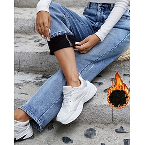 Жен. Нормальная Джинсы Шаровары Мода Уличный стиль Классический и неустаревающий Полная длина Завышенная Сплошной цвет Карман Дышащий Мягкий Слабоэластичная на открытом воздухе Повседневные