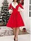 Новогодняя тематика Жен. Платье средней длины Платье A-силуэта На каждый день Повседневные Свидание На выход Стандартный Полотняное плетение Рукав 3/4 V-образный вырез Черный Белый Красный