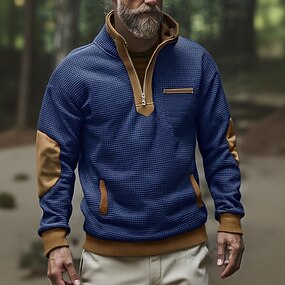 Муж. Толстовка на молнии Вафельная толстовка Натяни Черный Темно синий Половина молния Полотняное плетение Карман Цветовые блоки Офис Для занятий спортом Повседневные Активный Винтаж Круто Весна Осень