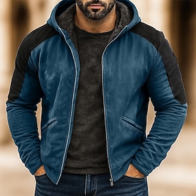 Муж. Толстовка Толстовка с капюшоном на молнии Толстовка из флиса Толстовка с капюшоном на флисовой подкладке Синий Темно-зеленый Коричневый Капюшон Полотняное плетение Пэчворк Цветовые блоки