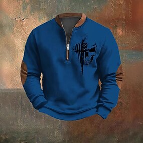 Муж. Толстовка Толстовка с застежкой-молнией Черный Белый Красный Темно синий Серый Половина молния Контрастных цветов Черепа Американский флаг Половина почтового индекса С принтом