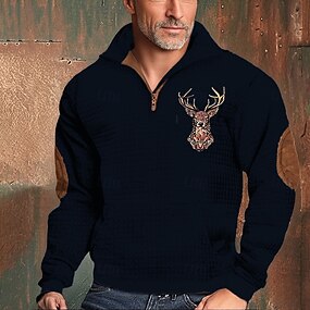 Муж. Толстовка Толстовка с застежкой-молнией Черный Темно синий Коричневый Серый Половина молния Контрастных цветов Корова Пэчворк Для занятий спортом Повседневные Праздники Полиэстер