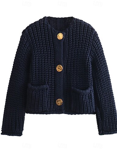 Жен. Кардиган Повседневные Стиль Классический Вязаные Вырез под горло Пуговицы Трикотаж Длинный рукав Обычные топы Вязать на открытом воздухе Повседневные Черный Темно синий Осень Зима