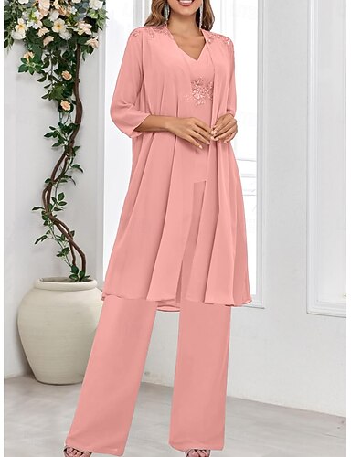 Костюм из трех частей для матери невесты элегантный плюс размер длина в пол шифон без рукавов включен пиджак однотонного цвета чтобы произвести впечатление