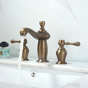 Ванная раковина кран - Классический / Широко распространенный Старая латунь / Матовый никель Разбросанная Две ручки три отверстияBath Taps
