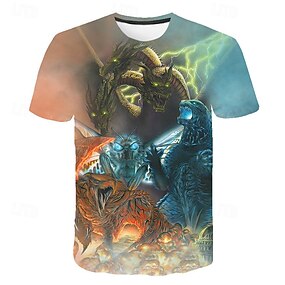Мальчики 3D Графика Животное Дракон Футболка С короткими рукавами Лето Весна Мода Классический Дети 4-12 лет Вырез под горло на открытом воздухе Повседневные Стандартный
